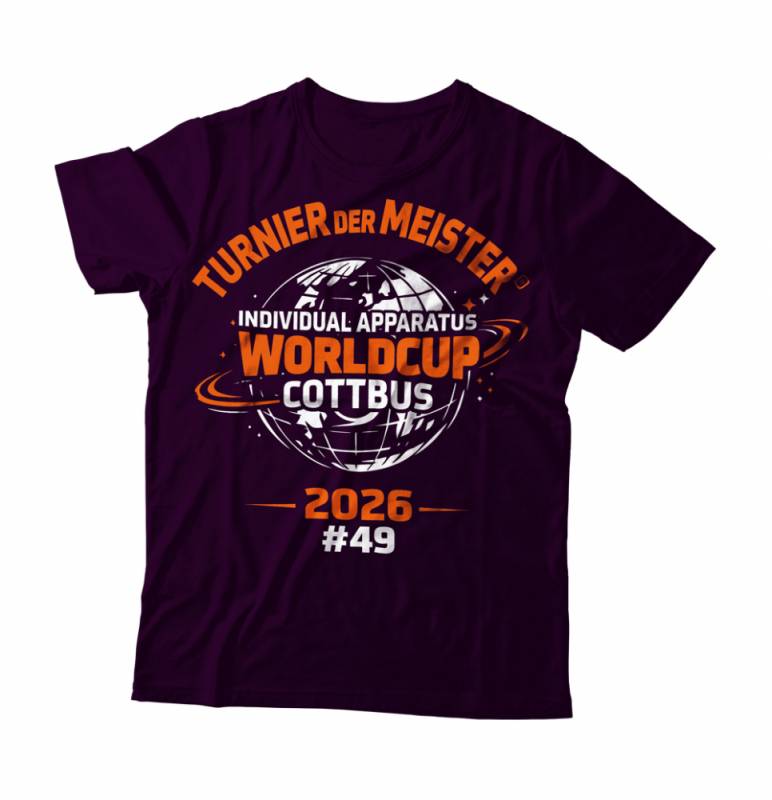 Es ist längst mehr als nur ein T-Shirt. Es ist Statement. Erinnerung. Gänsehautmoment. Auch 2026 gibt es wieder das offizielle Event-Shirt zum Turnier der Meister – Individual Apparatus Worldcup Cottbus. Und wie in den vergangenen Jahren gilt: Wer eins will, sollte schnell sein.